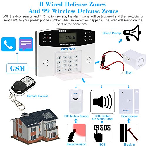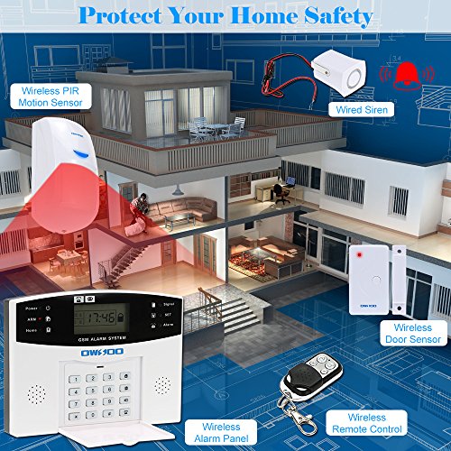 -. Title : OWSOO Wireless Home and Business Security Alarm System DIY Kit with Auto Dial SMS Alert Motion Sensor