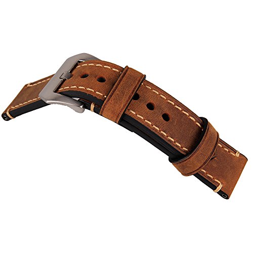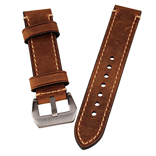 -. Feature : Vintage Genuine Leather Watch Strap Band Attach Two SP.R.Ing Bar Pins / Material: Genuine Leather and Metal / The strap is very gentle in touch and comes with stainless steel polished silver-coloured buckle / suitable for Panerai watches and a variety of thick shell style brands such as Timex watches fossil Noumea Northrop and other flat interface