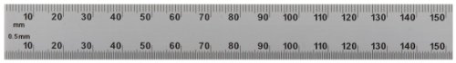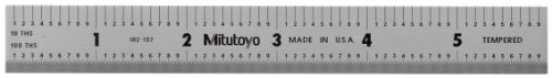 Mitutoyo 182-107, Steel Rule, 6"/150mm ( 1/10, 1/100", 1mm, 0.5mm), 3/64" Thick X 3/4" Wide, Satin Chrome Finish Tempered Stainless Steel