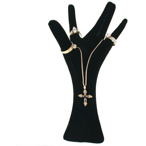 -. Binding : Kitchen -. Brand : FindingKing -. Color : Black -. Feature : This is a new black flocked polystyrene hand display / Hang necklaces or bracelets off of this hand display and immediately draw your customers attention to them / This is great to display jewelry at a show on in your store / It measures approximately 5 3/4" x 8" (145 x 203 mm) -. Model : TH-235FBK -. MPN : 65619156 -. PartNumber : 65619156 -. ProductGroup : Home -. ProductTypeName : HOME -. Title : Black Open Palm Ring Hand Display Jewelry Stand 8"