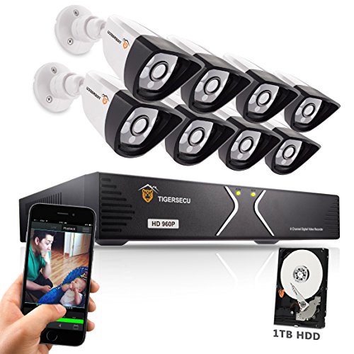 TIGERSECU AHD 720P 960P 960H 8-Channel Security DVR System, 1TB Hard Drive - Eight 1.3mp Weatherproof Outdoor Bullet Cameras, 65ft Night Vision (White)