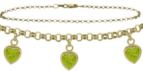 -. Title : 14K Yellow Gold Belcher Anklet with 2.10 Carat Genuine Peridot Heart Charm