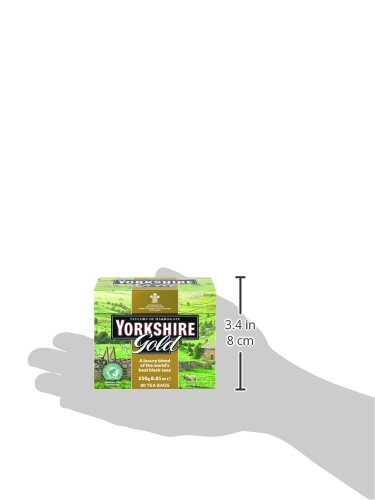 Blended in the Yorkshire dales. Worth paying a little more for. Yorkshire Gold is our very best blend. Like our Yorkshire team it has a lovely, rich taste with a distinctive briskness that makes it refreshing and reviving, but Yorkshire gold has even more flavour and character. We blend together teas from around twenty tea gardens are blended to give Yorkshire Gold its perfect balance of strength, colour, flavour and character. But finding the right teas we taste are right for Yorkshire gold because cultivating top quality teas takes extra time and care. By paying a little more we are encouraging the growers to make their best teas for us and our tea buyers spend part of the year visiting estates to build stronger and lasting partnerships with them. We also take the time and trouble to blend our tea so suit your water, whether it's hard or soft. And we believe that our traditional square tea bags are thee best because they allow the full flavour of the tea to develop.Feature