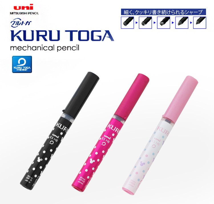 従来の芯は、外側が硬く、内側がやわらかい構造になっておりました。それに対してクルトガ替芯は独自の新製法により、芯の内側が硬く、外側がやわらかい構造を作り出しております。その為、内側は削れにくく、外側は削れやすいので、トガりやすく、しかもなめらかに書くことができます。