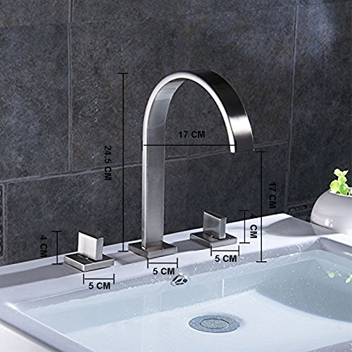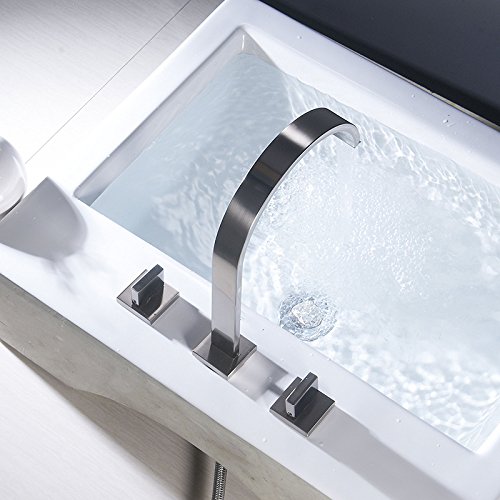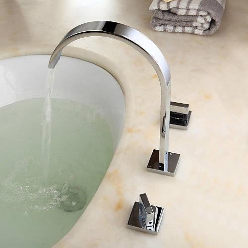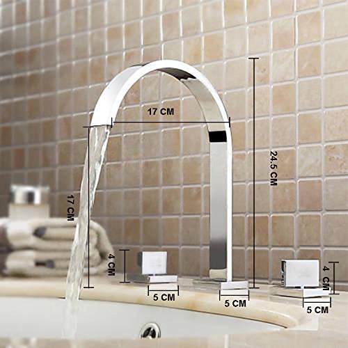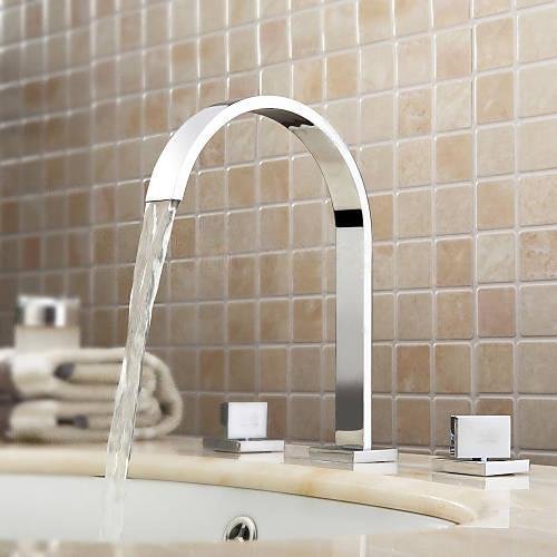 -. Title : Wovier Chrome Waterfall Bathroom Sink Faucet,Two Handle Three Hole Vessel Lavatory Faucet,Widespread Basin Mixer Tap