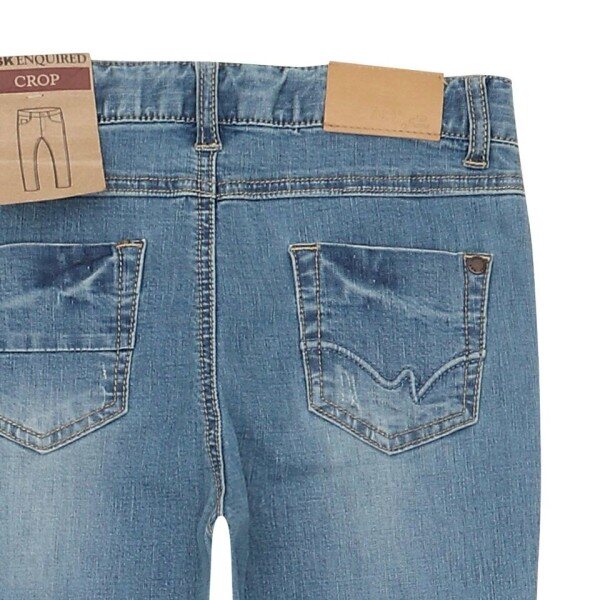 여아 8.5부 크롭 데님 팬츠.밑단 자국 워싱과 데미지로 포인트를 주었고 스판성이 우수한 제품.키가작고 통통한 아이에게도 적합한 상품. 기장 롭업을 해도 예쁜 아이템.