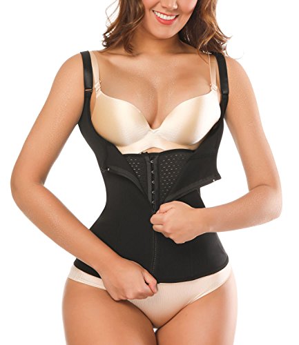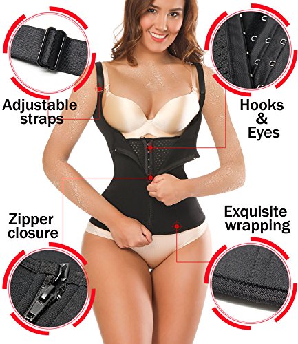 -. Feature : LIGHT WEIGHT FABRIC & STELL BONES: The underbust corsets is made of mesh fabric and latex, which is high elasticity and breathable. 6 pcs built-in spiral steel bones is more flexible and durable, it can prevent rolling up and keep you in best posture. / HOOK EYES & ZIPPER CLOSURE: 3 rows of hook-and-eye closures allow you to adjust the size, flexible boning anchors the cincher and prevents migration. Zipper design is easy to put on and off. / ADJUSTABLE STRAPS & ANTI-SLIP BVUCKLE: Shoulder strap can be adjust to fit. The anti-slip buckle on the chest to prevent zipper slipped. / TUMMY CONTROL & FAT BURNING: Underbust design can prevent the chest sagging. Underbust corset combine with latex vest have double Layer compression and control which flattens the stomach, Powerful slimming for the waist & lifts hip and back bust area / APPLICATION & NOTE:Waist trainers are perfect for weight loss training, workout band, or even postpartum support girdles. Besides flattening your abdomen, it will give you a trim line from hip to chest at the same time.