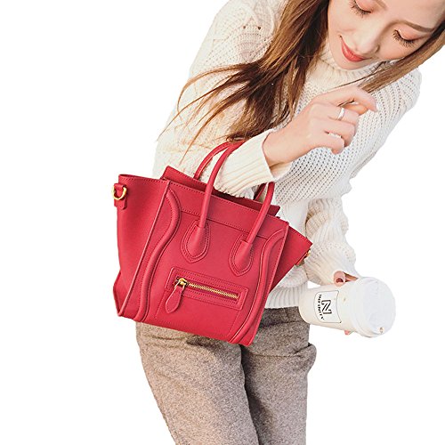 Handbags for Women,Women's Shoulder Bags PU Leather Handbags Top-Handle Purse For Ladies Smile Face Red