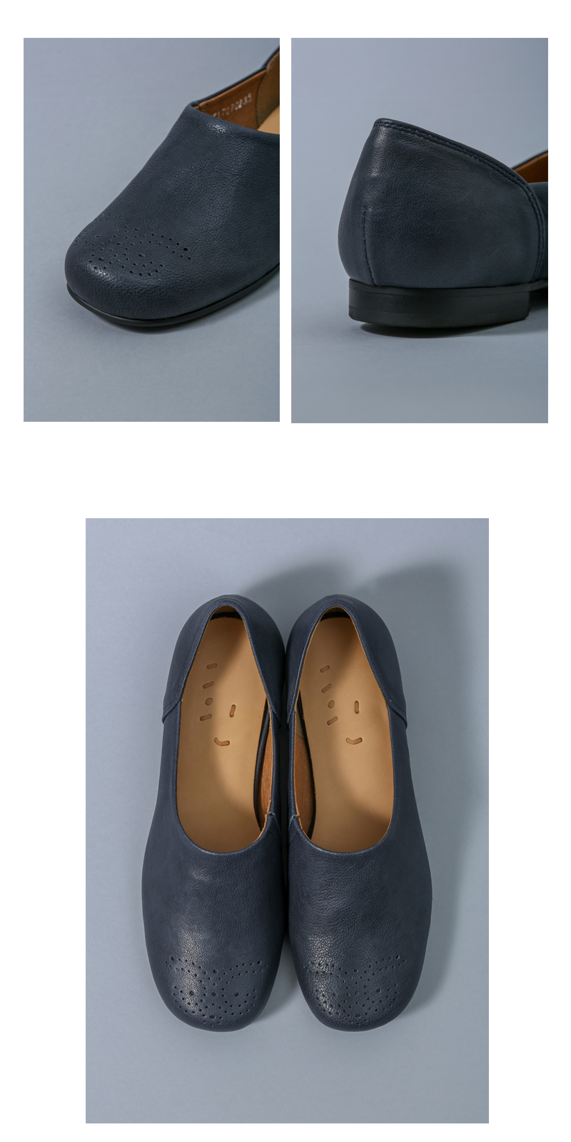 - 주문시 유의사항 : -흰의 모든 슈즈는 한 분을 위해 주문 후 제작하는 오더메이드슈즈입니다. -결제가 완료되면 익일 오전부터 수제화공장을 통해 제작하게되며, 약 일주일의 제작기간을 거쳐 택배를 통해 받으실 수 있습니다. (결제일로부터 8-10일 후 도착) -주문제작상품의 특성상 제품불량이 아닌, 단순변심으로 인한 교환이나 환불은 어렵습니다. 컬러와 사이즈를 신중히 결정하신 후 주문해주세요. 발등을 덮는 여성스러운 라인과 남성화에서 볼 수 있는 브로그 포인트가 있는 캐주얼 플랫슈즈입니다. 슈즈 내측에 신축성있는 엘라스틱밴드가 숨어있어 걸을때에도 답답하지 않고 신고벗기에도 편안한 슈즈입니다. 부드러운 돈피가죽으로 안감을 사용하고 지속력이 강한 소가죽을 발바닥이 닿는 안창에 사용했습니다. 안창 속에는 폭신한 메모리폼을 부착하여 착화감을 높인 편안한 슈즈입니다.