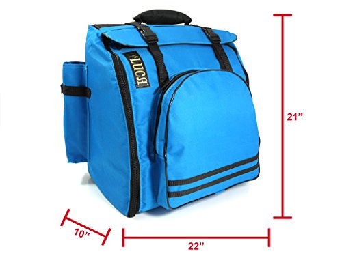 Studio : Sky Blue Telemarketing Inc. Publisher : Sky Blue Telemarketing Inc. Binding : Electronics Product Description D'Luca Accordion Gig Bags are professionally designed to safely and conveniently transport your beloved accordions. This durable backpack style Accordion Gig Bag is constructed with ripstop Nylon and is lined with 20mm padding which cradles your instrument from every angle for a full time protection. Features front and side pocket for music sheets, music stand, extra straps and accessories, Heavy-duty Padded Nylon Carrying Handle, Adjustable Padded Shoulder Straps, Zippers on each side of the bag to easily maneuver the accordion in or out with no hassle. DAG-96/120 Model fits: 80 Bass Piano Accordions, 96 Bass Piano Accordions, 120 Bass Piano Accordions. Weight: 4 Lbs. Size: 22" L x 10" W x 21" H. Made in Mexico. 0