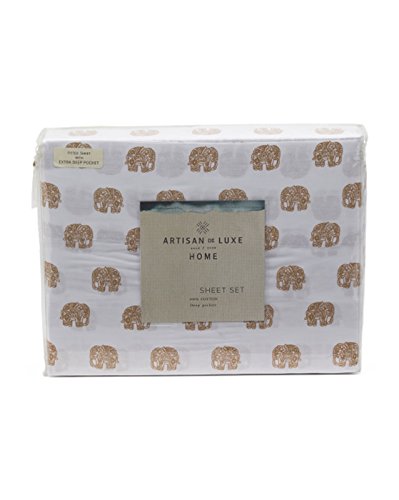 Artisan de Luxe Queen 4 Piece Sheet Set 100% 200 Thread Count Cotton Gold Elephant Extra Deep Pocket