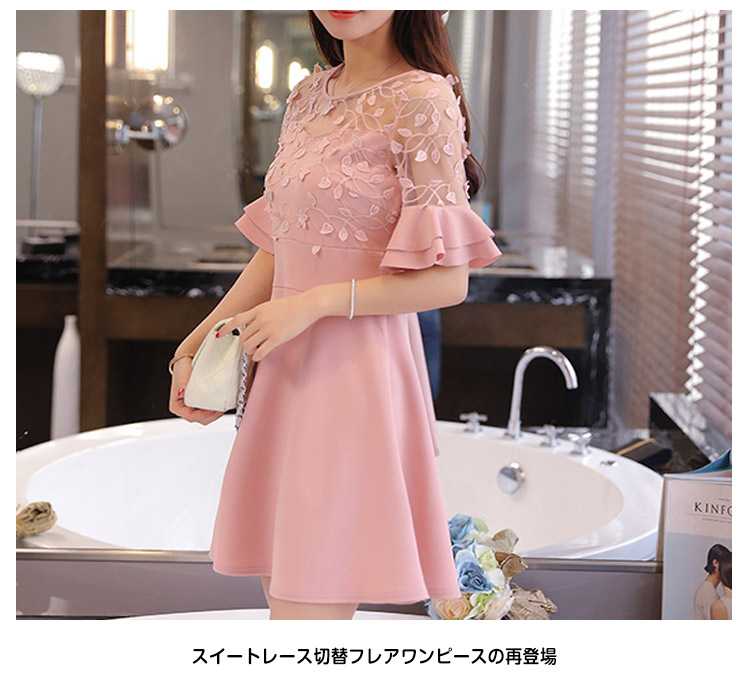 | スイートレース切替フレアワンピースの再登場一目ぼれになるこのお嬢さま向けワンピースが今季一押しITEMロマンチック雰囲気漂うこの一枚がパーディーなどフォーマルシーンにもピッタリ | |