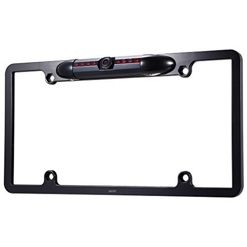 Stylish heavy-duty chrome plated frame, it is a durable metal frame with a very solid backup camera, lens angle physically adjustable on the backup camera, you can adjust the angle of the camera manually.