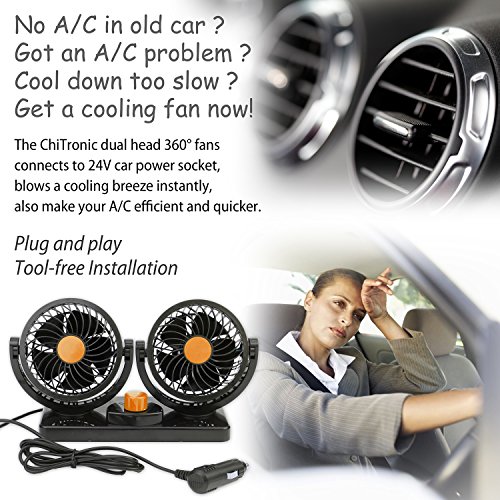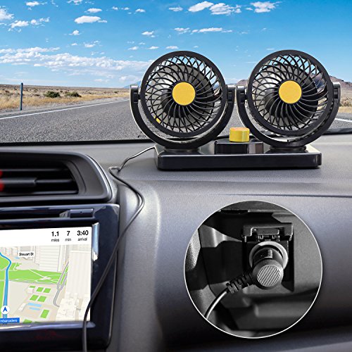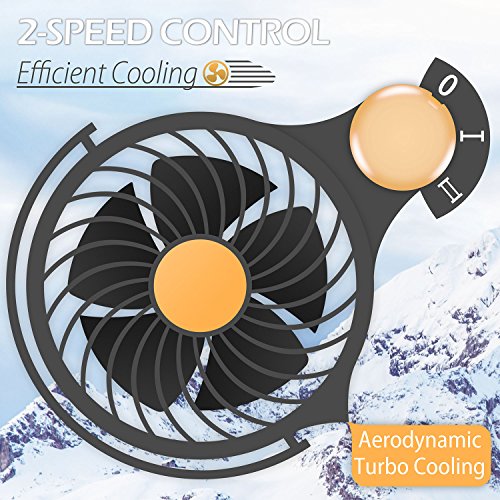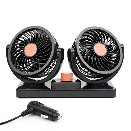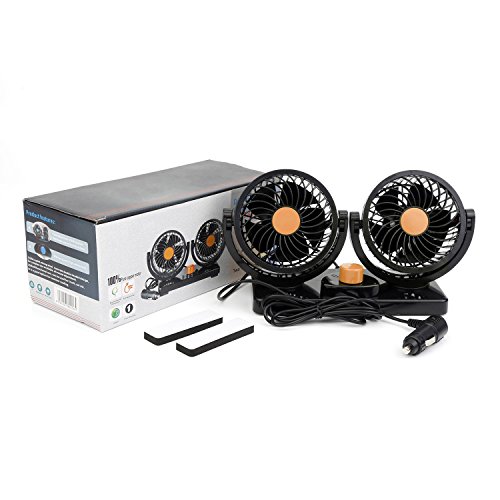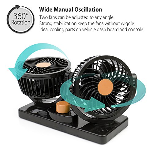 360 Degree Swiveling 2 Speed Control: The dual head fans can be adjusted to any angle, the stabilized rotating head is impossible to rock when car bumps. High/Low speed also you cool or venting in a proper and comfortable feeling.