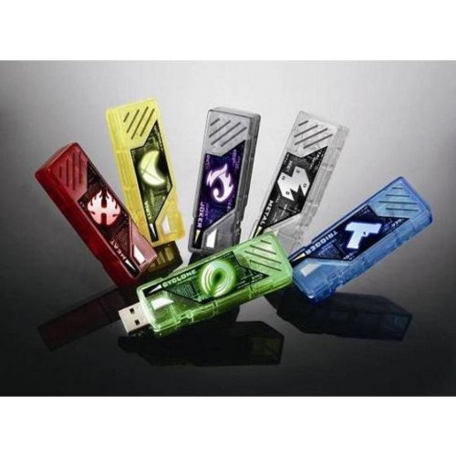 セット内容 ●ガイアメモリ ユニット × 6種 ●専用USBメモリ(2GB) ×1種 ●USB延長コード ×1本 ●取り扱い説明書 ×1部 本当に使える“ガイアメモリ”が登場! “ガイアメモリ”型USBメモリ。 番組に登場する6種全ての“ガイアメモリ”が楽しめます。 メモリの中には、ダブルドライバーが体験できるソフト入り。 メモリ容量は2GB。