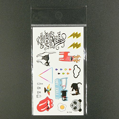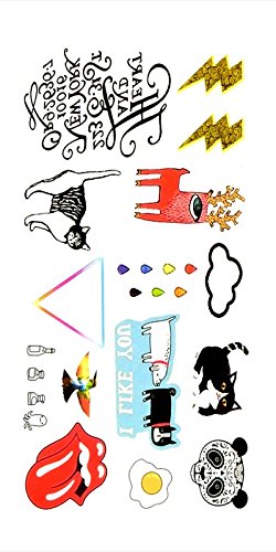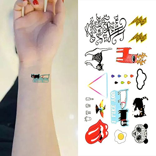 Oottati Small Cute Temporary Tattoo Thunder Cat Panda Egg Cloud English (2 Sheets)