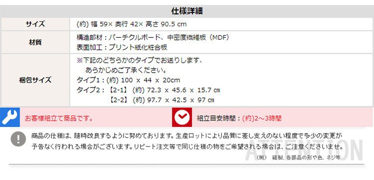 ※メーカー直送のため代金引換はお受けできません。※こちらの商品は、北海道・沖縄・離島へのお届けはお受けしておりません。■サイズ:外寸:幅59 x 奥行42 x 高さ90.5cm■カラー:ナチュラル ホワイト ダークブラウン ブラック■材質:パーチクルボード、中密度繊維板(MDF)、プリント紙化粧合板【エコファ加工商品】■その他:・お客様組み立て商品です。・梱包サイズ:(約)100×44×20cm・梱包重量:(約)30kg