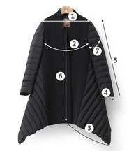 尺码 ①肩宽 ②胸围 ③半边摆围 ④袖口围 ⑤袖长 ⑥后中长 ⑦上臂围