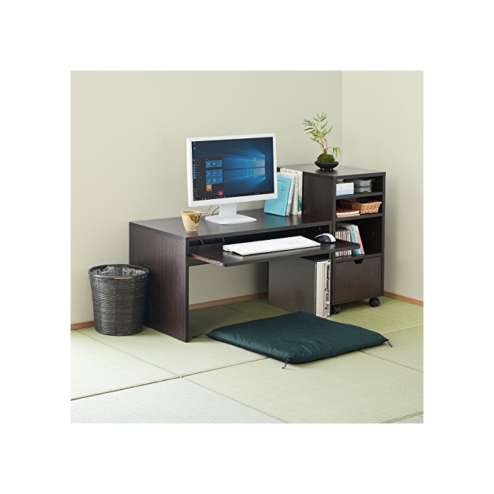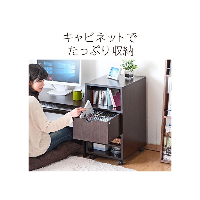 산와 다이렉트 PC 데스크 좌탁자 로우 데스크 목제 【캐비넷부】 폭85cm 멋쟁이 책상 암갈색 100-DESKL001