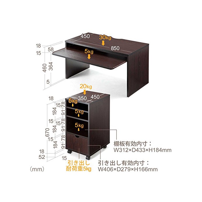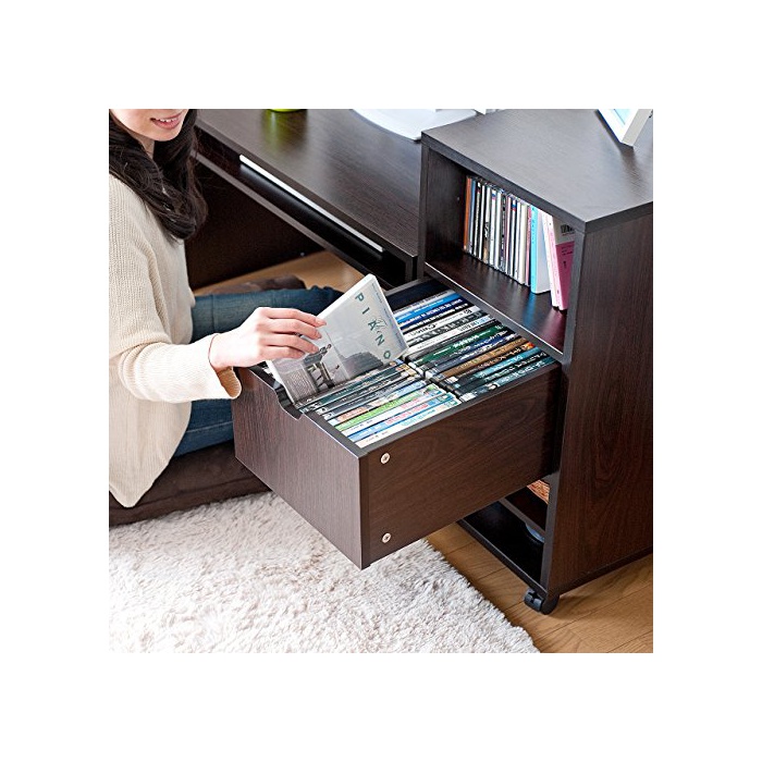 키보드 슬라이더부에,키보드나 소품의 수납으로도 쓸만합니다.수납 캐비넷 부착에,깊게 하의 서랍(인출)에는 서적이나 CDDVD,소품류 등이 충분히 수납 할 수 있는 때문에,데스크 위에 모노가 넘치는 일이 있지 않습니다.캐비넷은 캐스터 부착에,이동 시키는 것으로(에) 편리합니다.