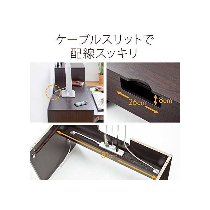 마루에 앉은 채로 릴랙스 해 작업 이 생기는 로우 타입의 PC 데스크입니다.(길이)깊이45cm,가 로 폭85cm의 성스페이스 (이므로)그래서 방에 압박감을 주지 않습니다. (책상이나 카운터의) 널찍하고 평평한 윗부분에 케이블 슬릿, (책상이나 카운터의) 널찍하고 평평한 윗부분 아래에는 좌우로 달리는 케이블 받는 것을 탑재하고, 케이블을 깨끗이 배선에 옵니다.