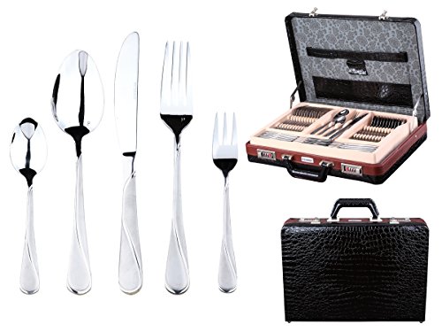 Meglio Luxury Cutlery Set in a Leather Case, 72 Count