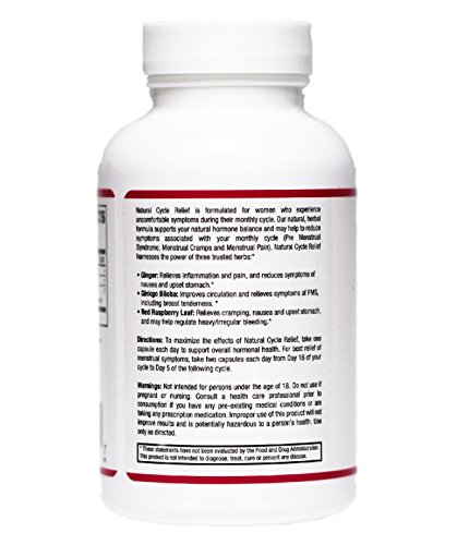Natural Cycle Relief combines powerful, natural herbal remedies: Red Raspberry Leaf, Ginger, and Ginkgo Biloba