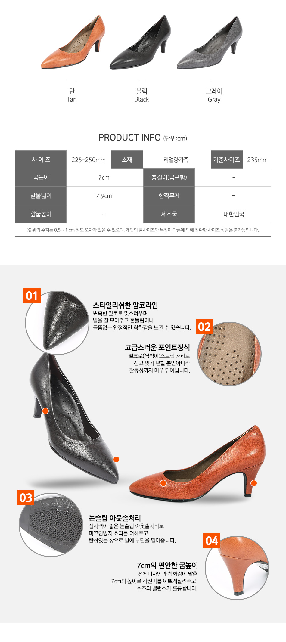 7cm의 굽높이로 각선미를 살려주고,