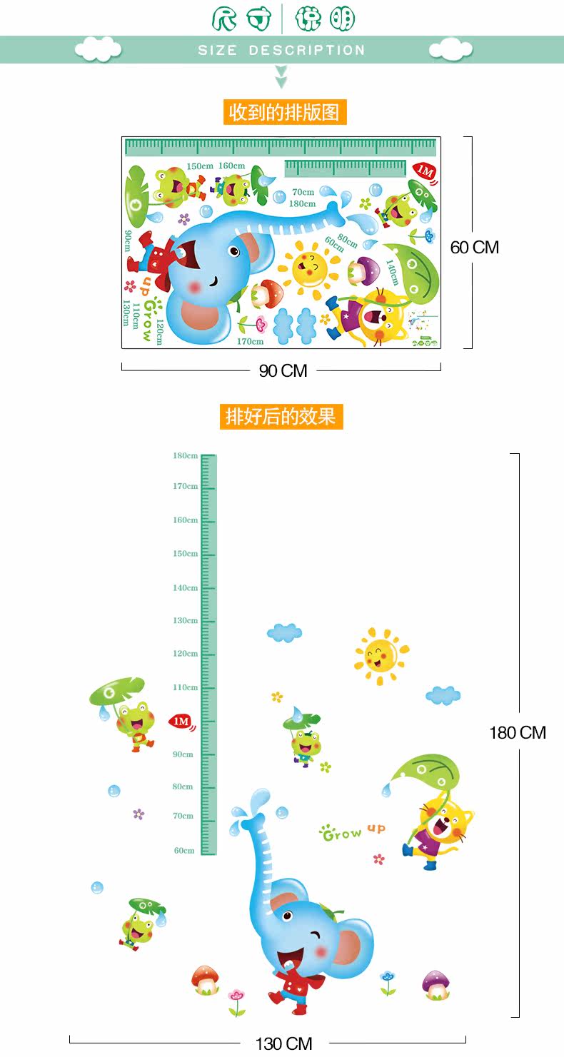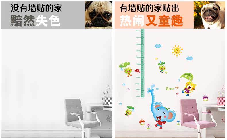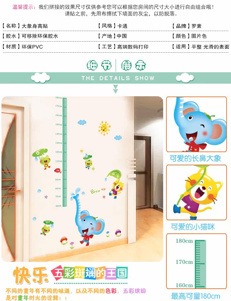 卡通大象宝宝量身高墙贴纸卧室幼儿园儿童房装饰背景自粘墙纸贴画