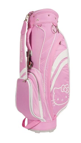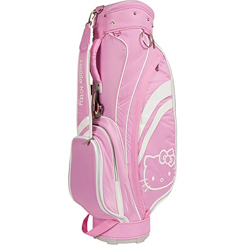The Hello Kitty Couture Cart Bag combines function and fashion. The pocket design allows for easy access to all pockets. The bag is made of padded OnOff Nylon with Tonal Hello Kitty logo’s. The bag comes with a zippered Hello Kitty ball and tee pouch that attaches with a Carabiner clip. Zipper flaps cover the side pocket zippers. Zippers are all finished off with custom Hello Kitty Zipper pulls. This lightweight, fashionable cart bag adds style and flair to any woman’s ensemble.Feature