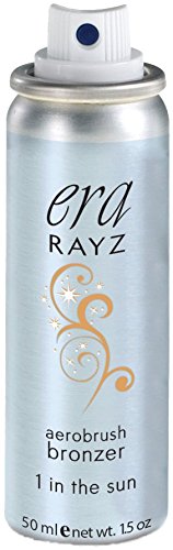 -. Binding : Health and Beauty -. Brand : ERA Beauty -. Color : 1.5 Ounce -. EAN : 0833578000277 -. Feature : Beautiful, natural color with a subtle hint of shimmer / Medi-spa levels of vitamins & botanicals / 360 Degree application range / Oil-free / Beautiful natural color with a subtle hint of shimmer / Medi-spa levels of vitamins and botanicals / Oil free -. HazardousMaterialType : Unknown -. Label : ERA Beauty -. Manufacturer : ERA Beauty -. MPN : 1 IN THE SUN -. NumberOfItems : 1 -. PackageQuantity : 1 -. PartNumber : 1 IN THE SUN -. ProductGroup : Beauty -. ProductTypeName : BEAUTY -. PublicationDate : 2015-02-18 -. Publisher : ERA Beauty -. ReleaseDate : 2015-03-20 -. Studio : ERA Beauty -. Title : ERA Rayz Face Bronzer, 1 In The Sun, 1.5 Ounce -. UPC : 833578000277