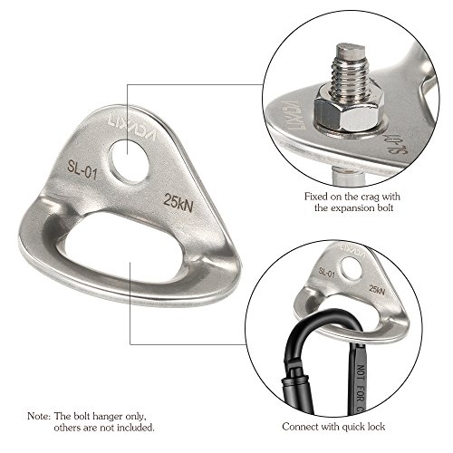 Feature: Maximum Breaking Strength: 25KN. Fit for the 10mm single rope. Vibrated stainless steel forged with great toughness and strength. Large open design and polished edges, multiple carabiner capacity. Sturdy climbing hanger for rock climbing, rescue, training, caving, mountaineering, etc.