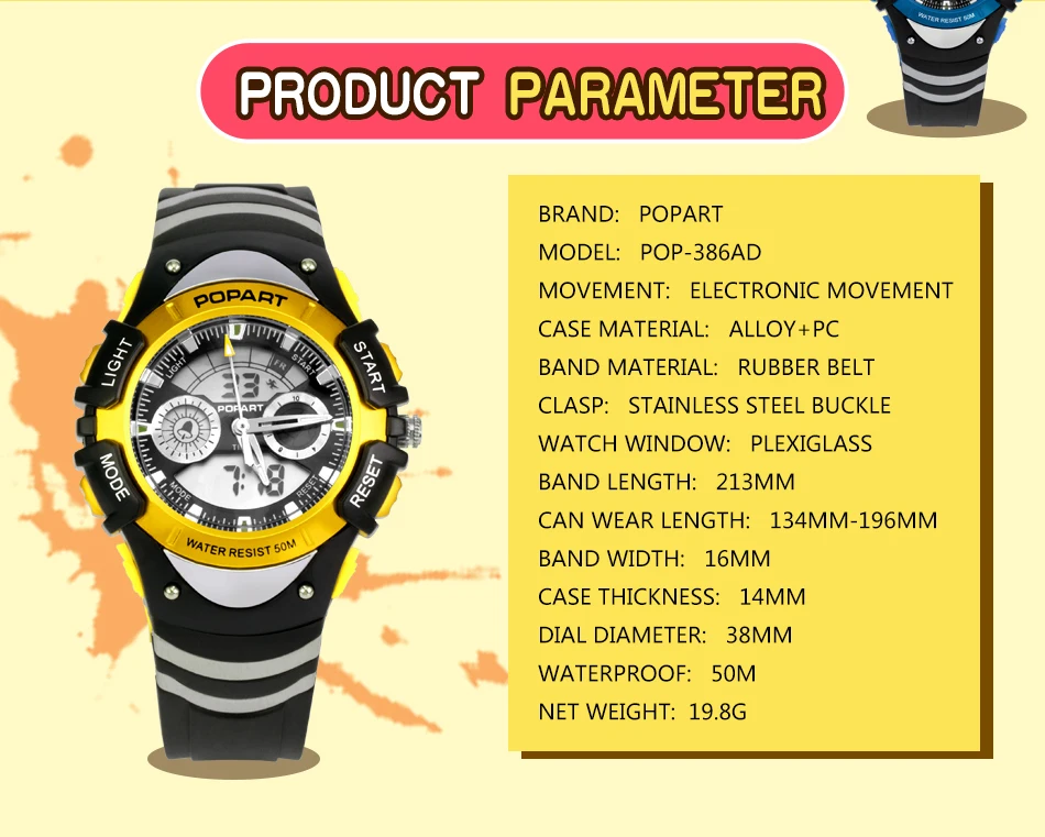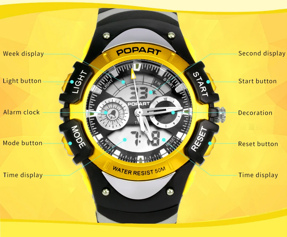Feature:Water Resistant,LED display,Multiple Time Zone,Stop Watch,Complete Calendar,Chronograph,Week Display,Alarm