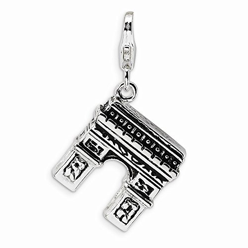 -. Title : Sterling Silver 3-D Enameled Arc De Triomphe w/Lobster Clasp Charm
