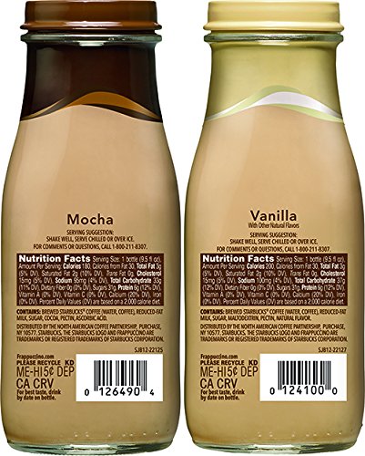 STARBUCKS FRAPPUCCINO, MOCHA AND VANILLA FLAVORS, 9.5 OUNCE GLASS BOTTLES (PACK OF 15)