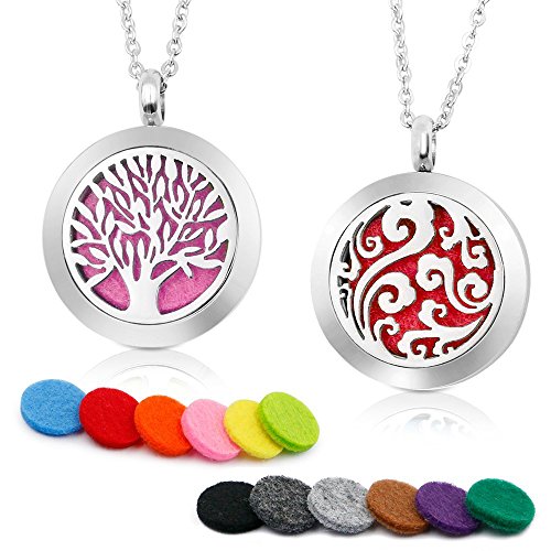- Two 25mm Stainless Steel Essential Oil Pendants with 23.6" Adjustable Necklace Chains... the "Tree of Eternal Life" and the "Silver Lining Clouds”