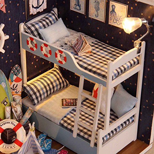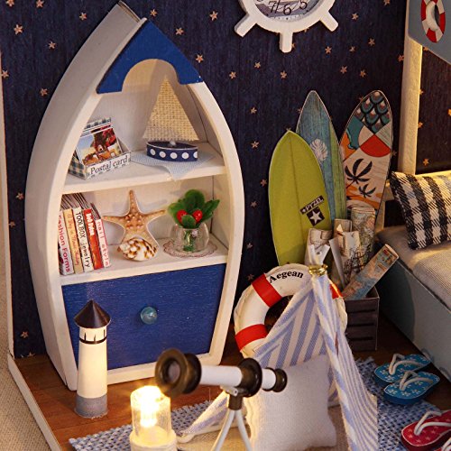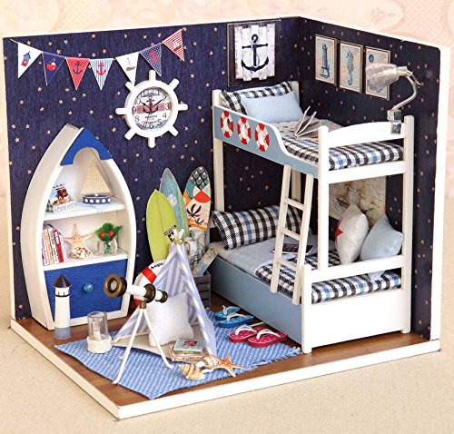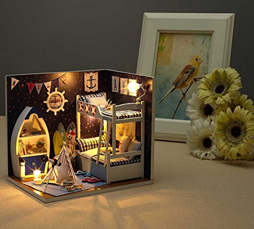 -. Title : Ogrmar Wooden Dollhouse Miniatures DIY House Kit With Cover and Led Light-Explore Starry Sky