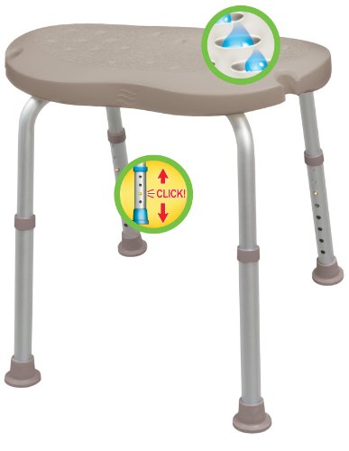 Aquasense Adjustable Bath and Shower Chair with Non-Slip Comfort Seat, Pebble Taupe