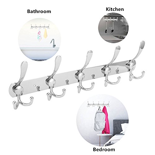Studio : Efaithtek Publisher : Efaithtek Binding : Office Product Product Description Size:2PACK 15 hooks Package Included: 2 x Hooks Hanger 4x Screws 4 x Screw caps 4 x Bolt Washers 4x Plastic dowels Features: Sturdy design, 2 screw holes for the 15 hooks hanger, can be mounted steadily. Polished finish, looks more reflective and sleek. 5 triple hooks (15 hooks in total), serve different purposes. Specification: Color: Silver Material: stainless steel and zinc-alloy Weight Capacity: 33lbs Hook Quantity: 15 (5 triple hooks) Quantity of Screw Holes: 2 Rack Dimensions: 16.5x 5 x 1.57 inches/42 x 13 x 4 cm 0