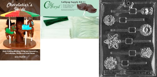 Cybrtrayd 45StK25GRBk-F021 Assorted Flowers Lolly Chocolate Candy Mold with Chocolatier's Bundle, Includes 25 Lollipop Sticks, 25 Cello Bags, 25 Green Twist Ties and Chocolatier's Guide