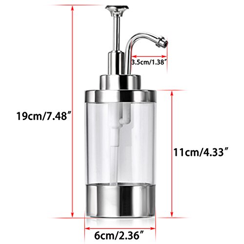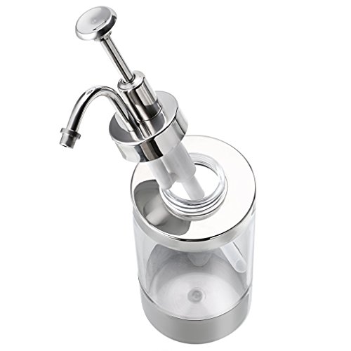 - Great soap dispenser in the kitchen, bathroom, hotel. The clear section is plastic but with the Stainless steel top and bottom, it doesn't appear "plasticy" .The pump is great. The best thing about this dispenser is that soap doesn't run down the sides and leave a mess on the counter. This also means you don't waste soap like you do in many dispensers. Any idea or problem, welcome to send us the email.
