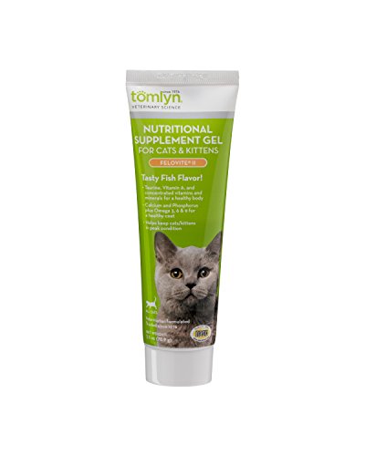 -. Binding : Misc. -. Brand : Tom Lyn -. EAN : 0030521067800 -. Feature : High-quality daily vitamin and mineral supplement to meet cats' and kittens' special nutritional needs / Concentrated formula: more vitamins and minerals for less / Tasty Fish Flavor / 100% Satisfaction Guaranteed! / Essential for the development of the eyes and heart / Felovite II contains vitamin A, D, E, minerals and calcium / Natural tuna flavor ideal for cats -. IsAutographed : 0 -. IsMemorabilia : 0 -. Label : Vétoquinol USA OTC -. Manufacturer : Vétoquinol USA OTC -. Model : 30521067800 -. MPN : 411474 -. NumberOfItems : 1 -. PackageQuantity : 1 -. PartNumber : 411474 -. ProductGroup : Pet Products -. ProductTypeName : PET_SUPPLIES -. Publisher : Vétoquinol USA OTC -. Size : 2.5 -. Studio : Vétoquinol USA OTC -. Title : Tomlyn Nutritional Supplement Gel (Felovite II®) Cats and Kittens 2.5 oz -. UPC : 030521067800