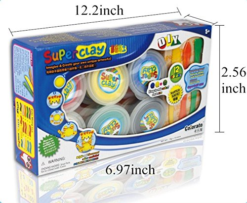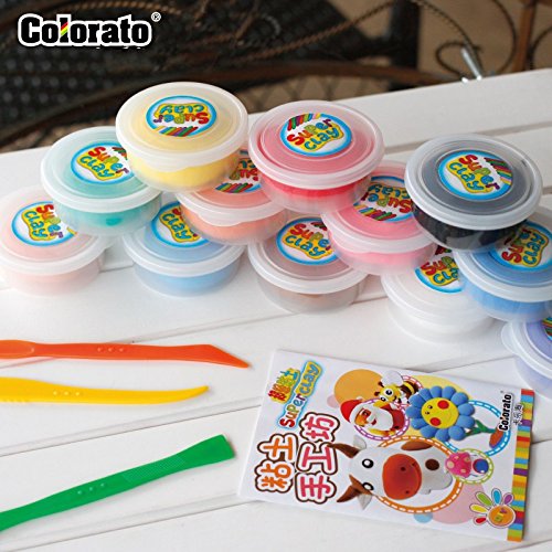 12 Colors Colorato Clay Refill: Ultra light, air-dries soft fluffy textures clay with exceptional plasticity; easy to mix new color and mold, will not crumble after dry, keep your masterpiece for years