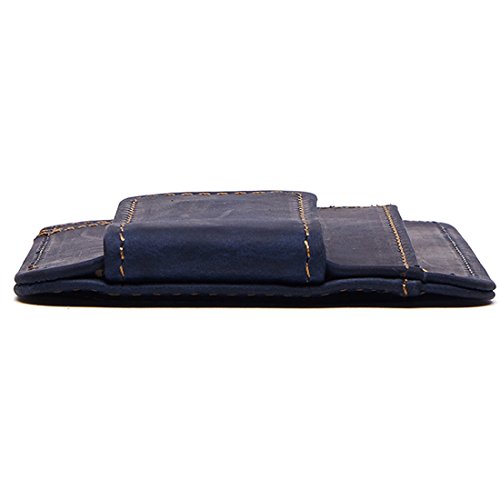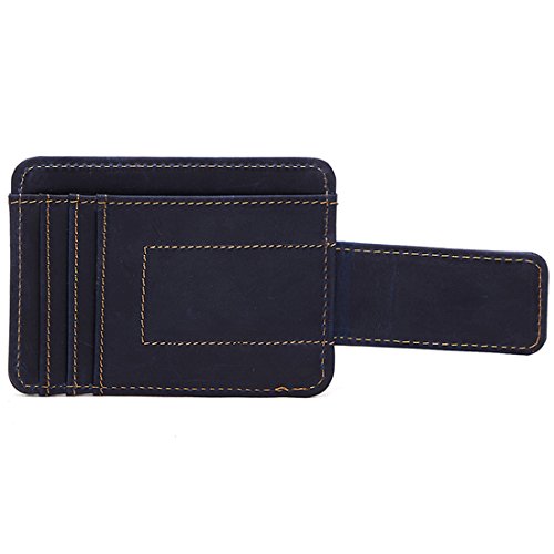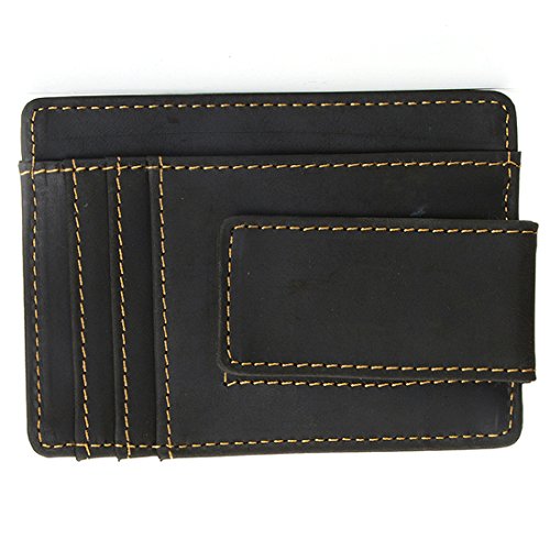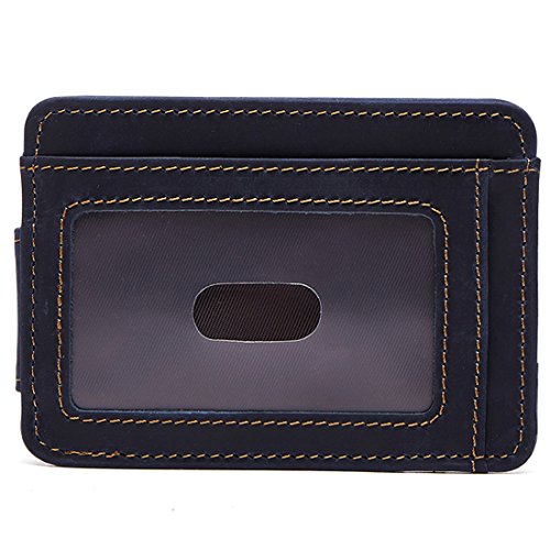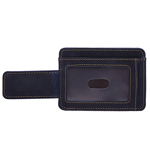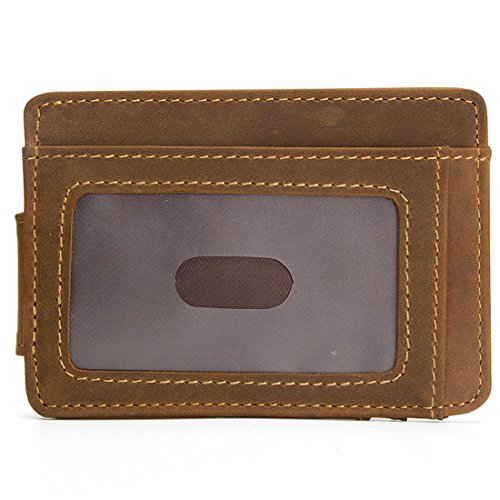 -. Feature : Material: Genuine Leather , ATTENTION: Our logo is engraved in the surface of card holder. / Size: 11.5 x 8.5 x 0.5 cm / Closure: Magnetic Hasp / Structure: It has 6 card slots and one ID window. Slim design, really a thin wallet makes it easy to slide into your front or Back pocket. / Please be noted: This is genuine crazy horse leather products, it usually come with the leather smell and it'll fade out as time going. It's also easy to get scratches on the surface, please understand, thanks.