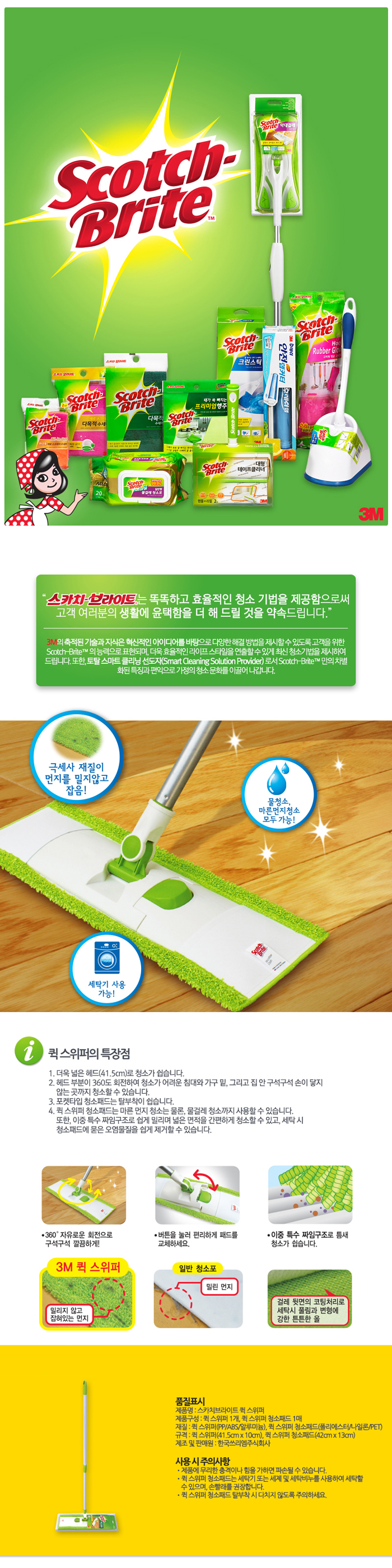 Sanitary quick sweeper bar mop set cleaning tools toiletries 3M