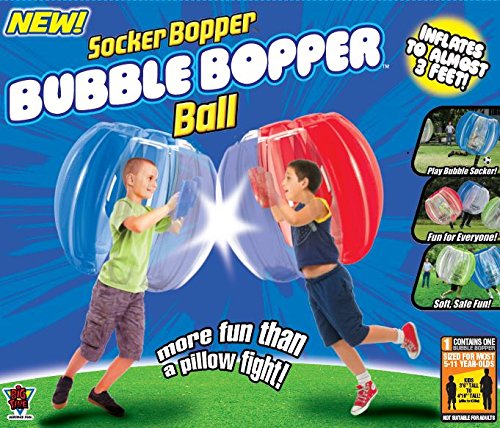 ReleaseDate : 2017-06-01 Studio : Big Time Toys, LLC Publisher : Big Time Toys, LLC Binding : Toy Product Description The only kid-sized Bubble Soccer Bopp'n ball! Climb in for loads of soft, safe fun for everyone. Ball surrounds you with pillow of protection. More fun than a pillow fight! turn sporting games into serious fun with this bubble Bopper ball! roll tumble, bounce and Bop your way to fun without risk of injury. 2 nylon adjustable shoulder straps, foam-padded handles, quick-release valve for easy deflation and storage and 2 repair patches. 0