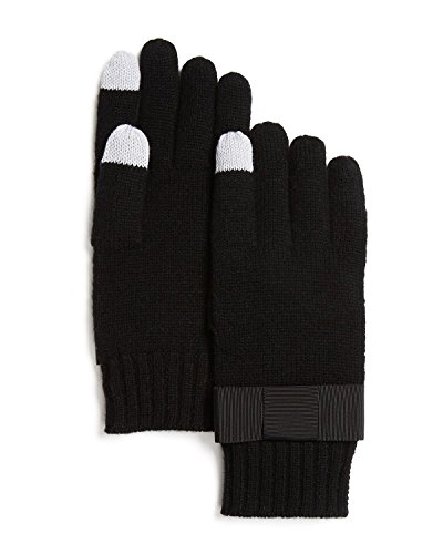 Kate Spade Women's Ribbed Grosgrain Ribbon Gloves, Black (One Size)