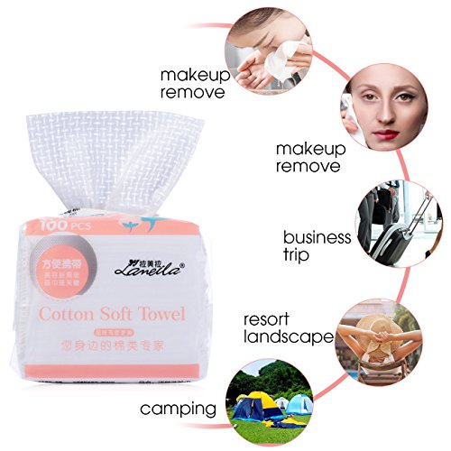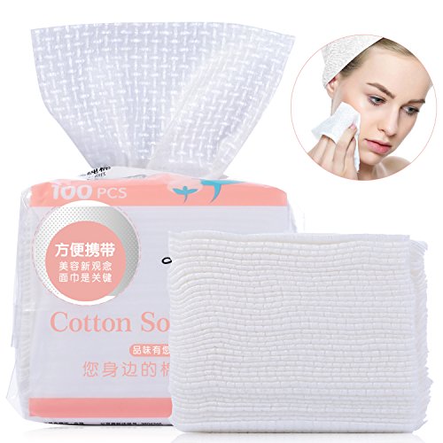 100Pcs Facial Cotton Tissue cotton soft towel, Absorbent Cotton Pad Large (100 mm x 185 mm) for Face Eye Makeup Remover and Nail Polish,Wet/Dry Use...