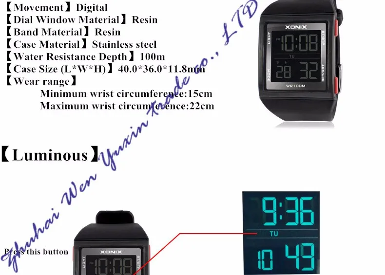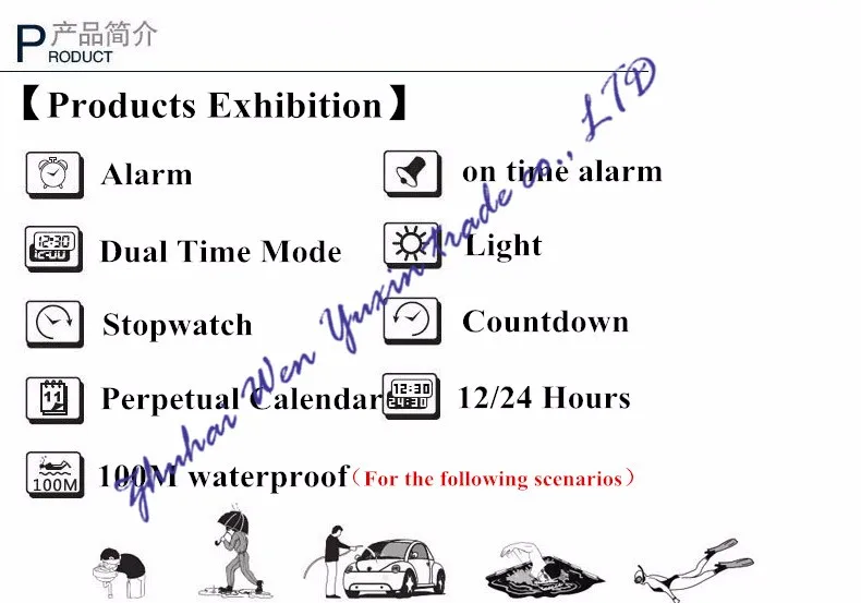 Feature:Complete Calendar,Shock Resistant,Moon Phase,Stop Watch,LED display,Auto Date,Water Resistant,Diver,Back Light,Chronograph,Multiple Time Zone,Alarm,Repeater