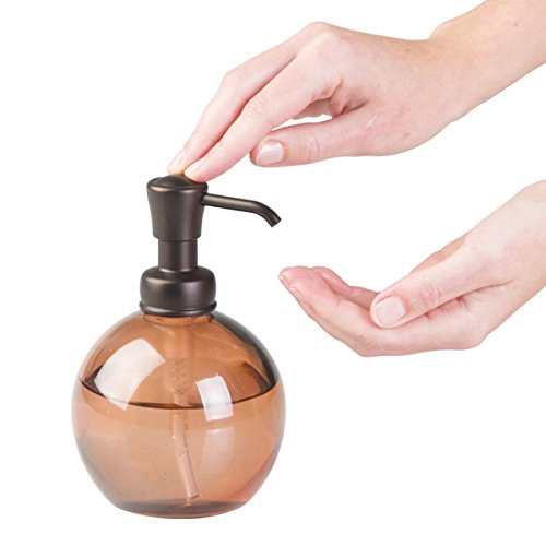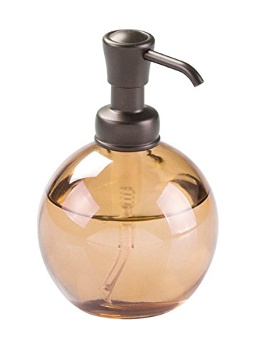 mDesign Round Glass Soap & Lotion Dispenser Pump for Kitchen & Bathroom Countertops, Sand/Bronze